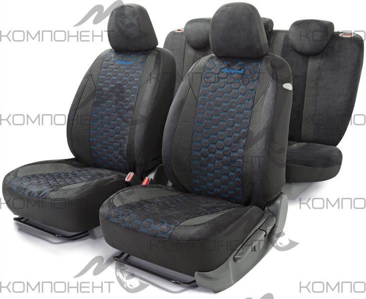 Авточехлы алькантара 15пр. ALCANTARA черный/синий