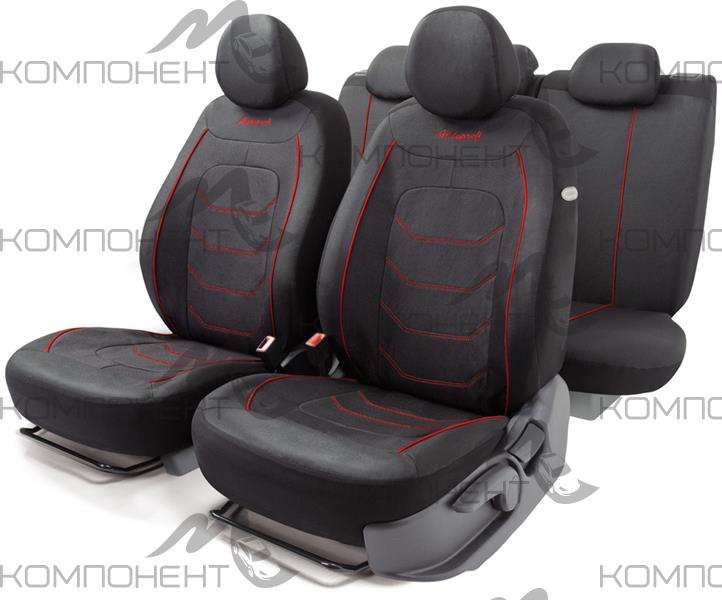 Авточехлы жаккард 11пр. ARROW однотонный с контрастной прострочкой черн./крас.