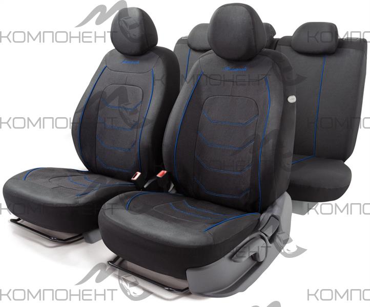 Авточехлы жаккард 11пр. ARROW однотонный с контрастной прострочкой черн./син.