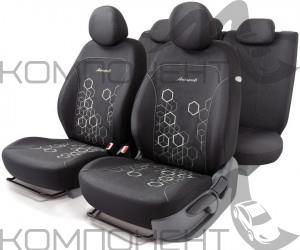 Авточехлы жаккард 11пр. HOLOGRAM однотонный с фигурной вышивкой черн./белый