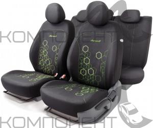 Авточехлы жаккард 11пр. HOLOGRAM однотонный с фигурной вышивкой черн./зеленый