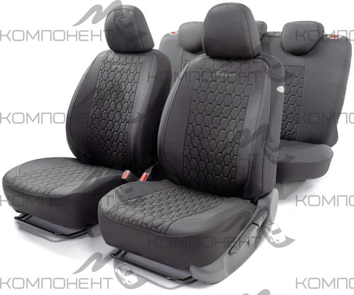 Авточехлы лен 15пр. VERONA мелкого плетения с контраст. прострочкой черн.
