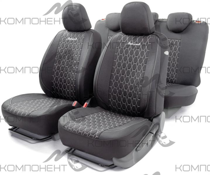 Авточехлы лен 15пр. VERONA мелкого плетения с контраст. прострочкой черн./белый