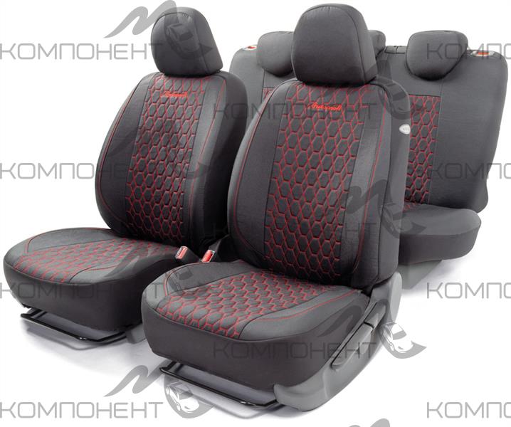 Авточехлы лен 15пр. VERONA мелкого плетения с контраст. прострочкой черн./крас.