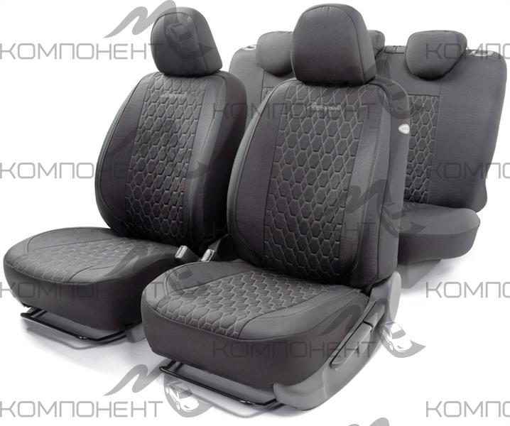 Авточехлы лен 15пр. VERONA мелкого плетения с контраст. прострочкой черн./сер.