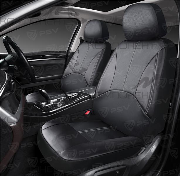 Авточехлы на передние сидения экокожа 6пр. PSV Imperial Next 2 FRONT Черный/отстрочка серая