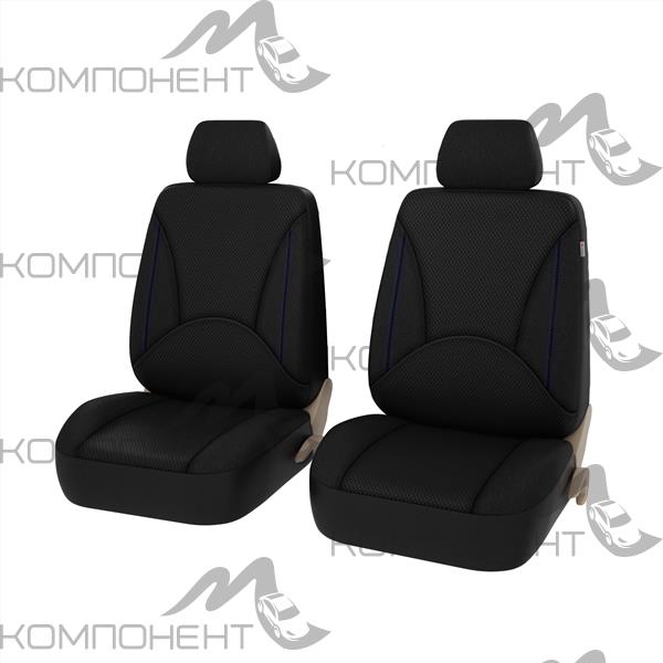 Авточехлы на передние сиденья экокожа/жаккард 6пр. PSV Imperial Next 2 FRONT Черный/Отстрочка синяя