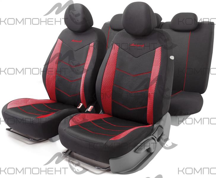 Авточехлы объемная сетчатая ткань 11пр. AEROBOOST черный/красный