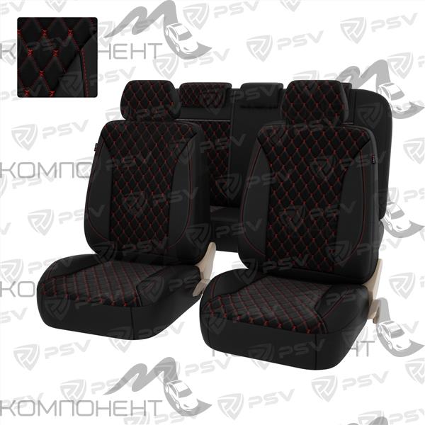 Авточехлы экокожа/велюр 11пр. PSV Graf Next Черный/Ромб красный "Бабочка"/отстрочка красная