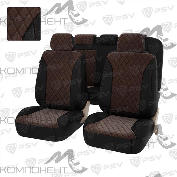 Авточехлы экокожа/велюр 11пр. PSV Graf Next Черный-Коричневый/Ромб Коричневый "Бабочка"