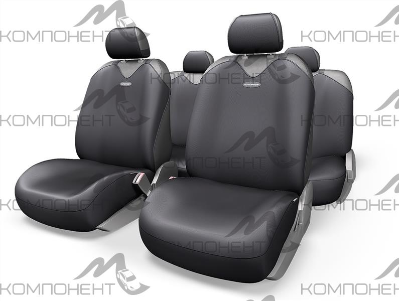 Авточехлы-майки полиэстер 9пр. R-1 SPORT PLUS закрытое сиденье черн.