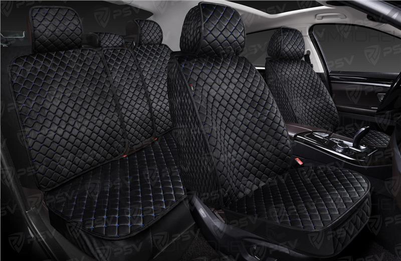 Накидки на весь салон 5D велюр PSV Velur Next Черный/Отстрочка синяя ромб Звезда