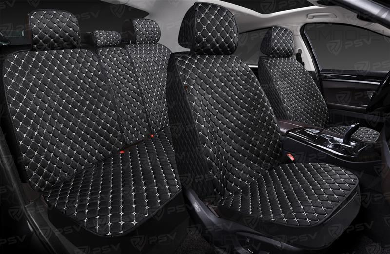 Накидки на весь салон 5D лен PSV Len Next Черный/Отстрочка белая ромб Звезда
