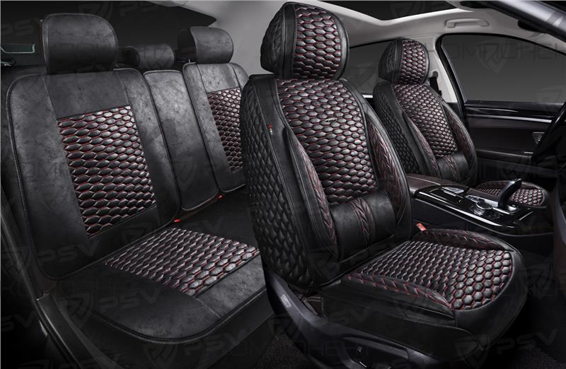 Накидки на весь салон 5D мокрая кожа PSV Armada Skin Черный/Отстрочка Красная