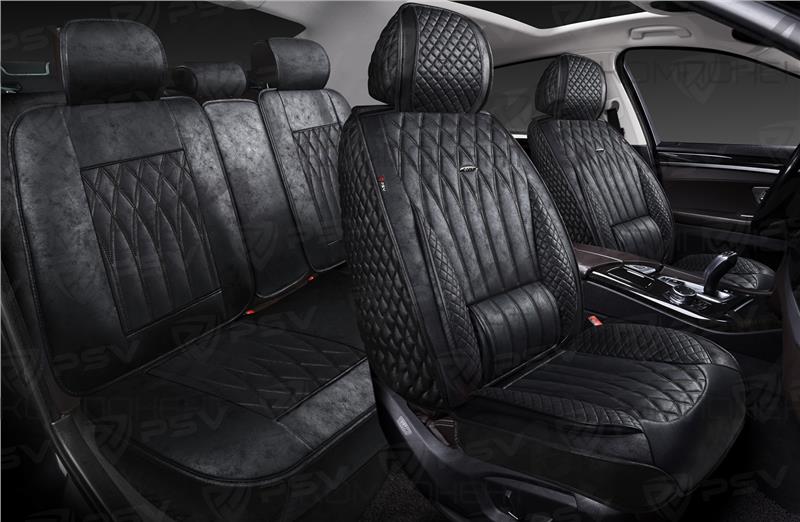 Накидки на весь салон 5D мокрая кожа PSV Titan Skin Черный/Отстрочка Черная