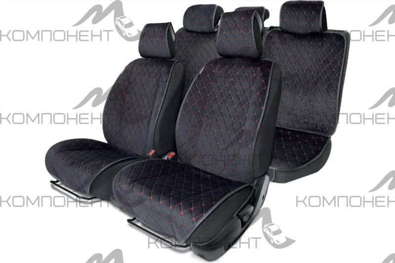 Накидки на весь салон алькантара с контраст. простроч. порол. 10мм антискольз. Черн/Красн