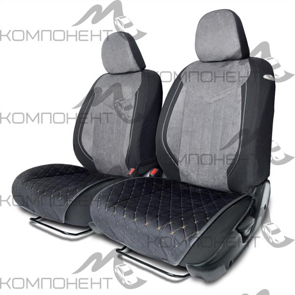 Накидки на нижнюю часть сиденья AUTOPROFI алькантара 2шт простроч. порол.10мм антискольз. черн/беж