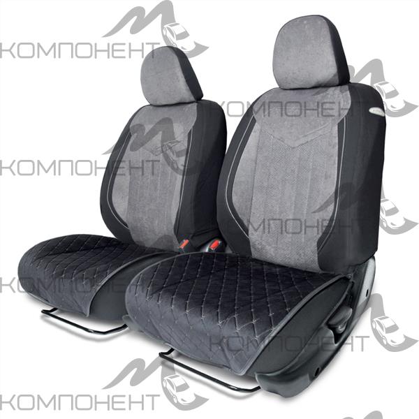 Накидки на нижнюю часть сиденья AUTOPROFI алькантара 2шт простроч. порол.10мм антискольз. черн/сер
