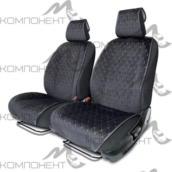 Накидки на передние сиденья AUTOPROFI алькантара 2шт простроч.порол.10мм антискольз.Черн/Беж