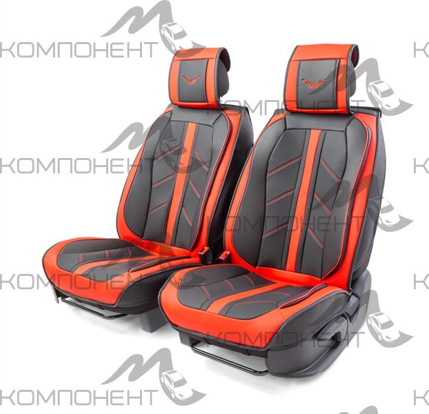 Накидки на передние сиденья каркас 3D экокожа 2шт Car Performance порол.12мм чер/кр