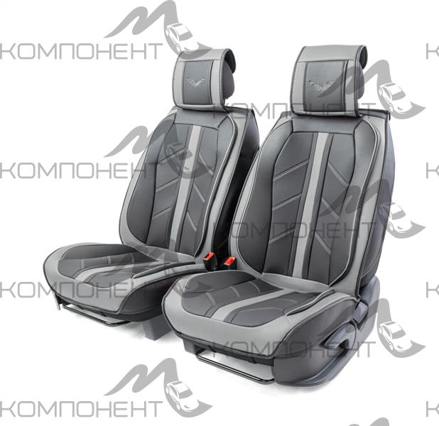 Накидки на передние сиденья каркас 3D экокожа 2шт Car Performance порол.12мм чер/сер
