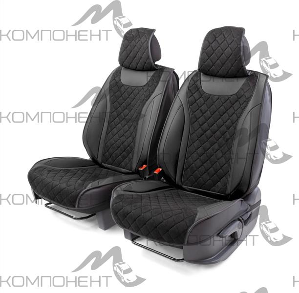 Накидки на передние сиденья каркас 3D экокожа/алькантара 2шт Car Performance ромб порол.10мм черн.
