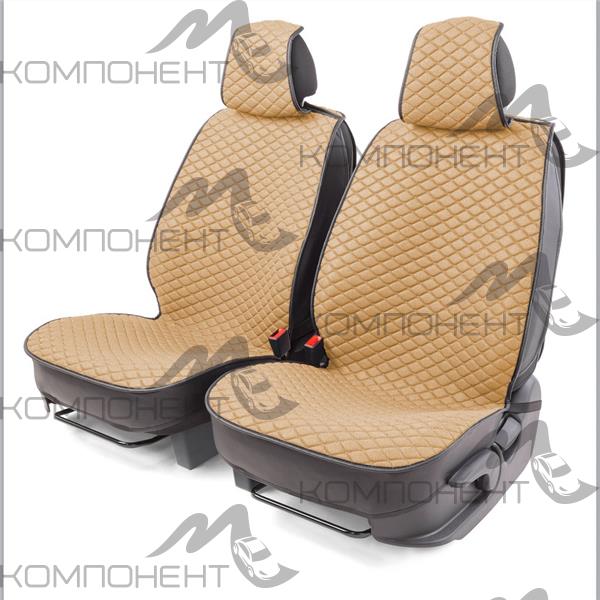 Накидки на передние сиденья каркас лен 2шт Car Performance fiberflax круп плетен+ромб порол.10мм беж