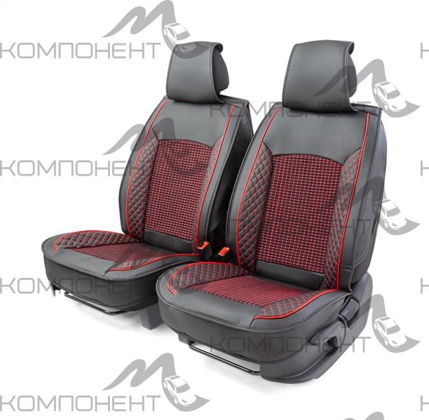 Накидки на передние сиденья каркас экокожа 2шт Car Performance порол.12мм черн/крас