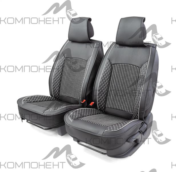 Накидки на передние сиденья каркас экокожа 2шт Car Performance порол.12мм черн/сер