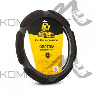 Оплетка руля L ( 6 подушек) алькантара CAR PERFORMANCE наполнитель 2см. поролон с памятью Черная