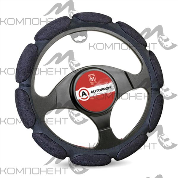 Оплетка руля L (10 подушек) алькантара AUTOPROFI наполнитель 2см. поролон с памятью Черная