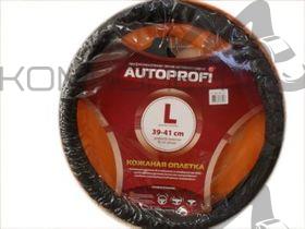 Оплетка руля L кожа нат. AUTOPROFI протектор "елочкой" Черная