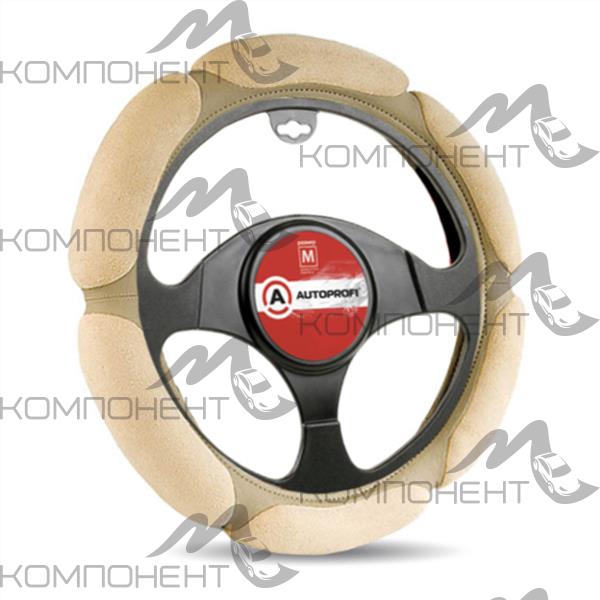 Оплетка руля M ( 6 подушек) алькантара AUTOPROFI наполнитель 2см. поролон с памятью Бежевая
