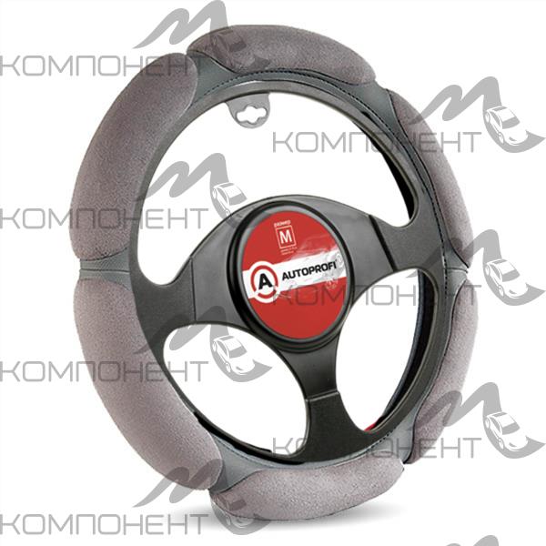 Оплетка руля M ( 6 подушек) алькантара AUTOPROFI наполнитель 2см. поролон с памятью Светло/Серая