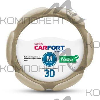 Оплетка руля M ( 6 подушек) экокожа CARFORT 3D бежевая
