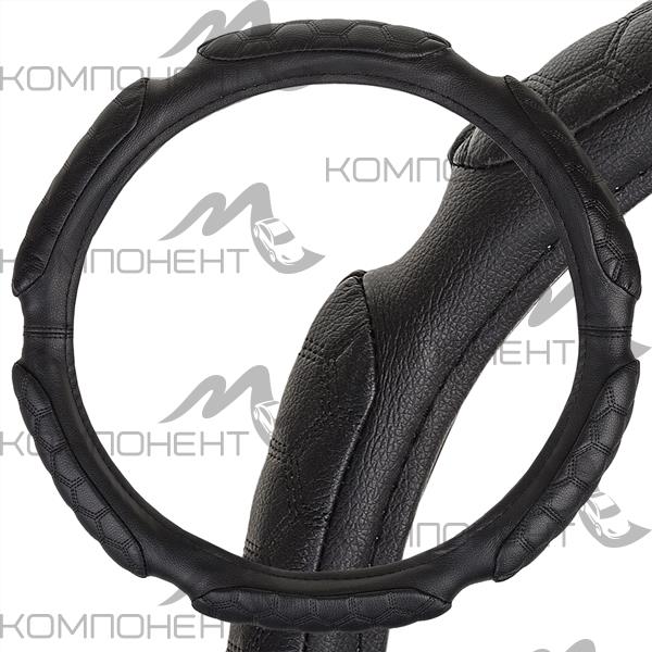 Оплетка руля M ( 6 подушек) экокожа SKYWAY Sponge turtle Черная