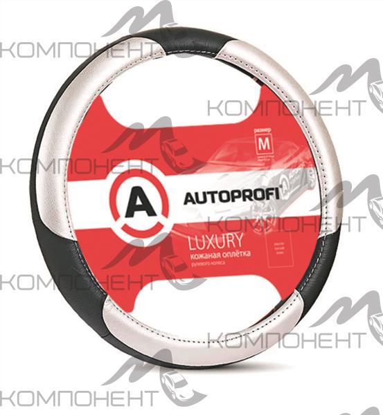 Оплетка руля M кожа нат. AUTOPROFI LUXURY 3 цветных вставки из экокожи Черная/Серебро
