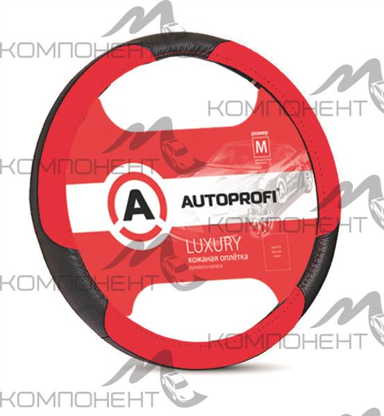 Оплетка руля M кожа нат. AUTOPROFI LUXURY 3 цветных вставки из экокожи Черно/Красная