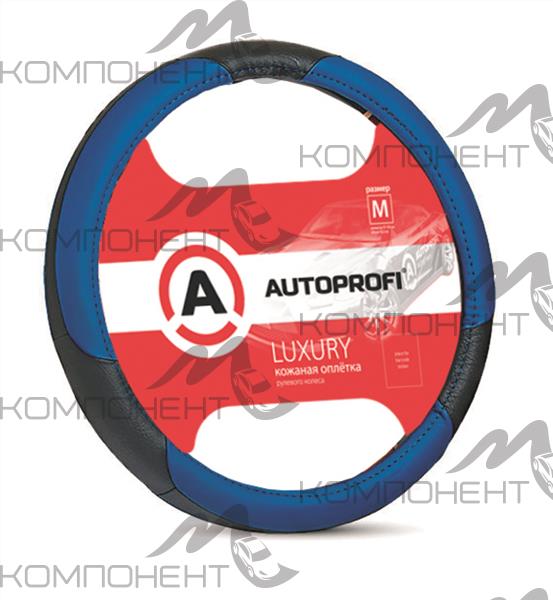 Оплетка руля M кожа нат. AUTOPROFI LUXURY 3 цветных вставки из экокожи Черно/Синяя