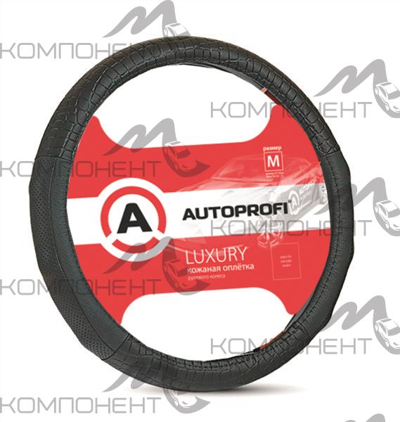 Оплетка руля M кожа нат. AUTOPROFI LUXURY с перфорацией/вставки из экокожи под крокодила Черная