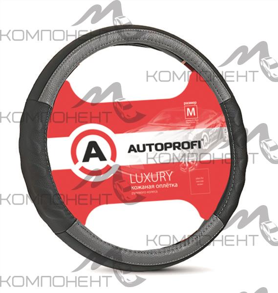 Оплетка руля M кожа нат. AUTOPROFI LUXURY с прострочкой Черно/Серая