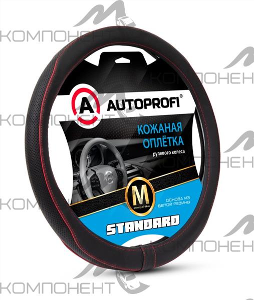 Оплетка руля M кожа нат. AUTOPROFI Standard перф. вставка, бейка, прострочка Черный/красный