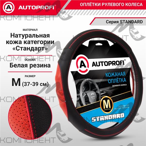 Оплетка руля M кожа нат. AUTOPROFI Standard перф. рельеф. вставки, прострочка Черный/красный