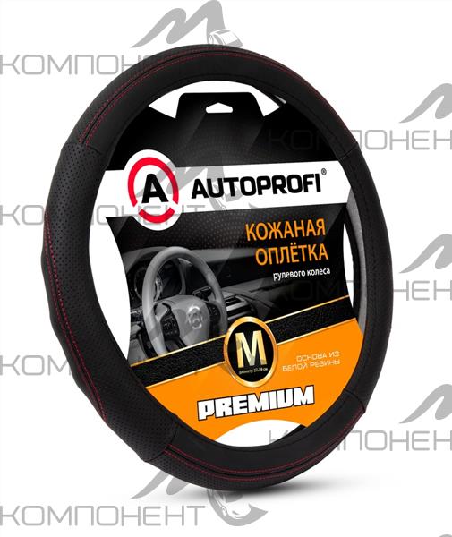 Оплетка руля M кожа нат. Nappa AUTOPROFI Premium перфор. рельеф. вставки, прострочка Черный/красный