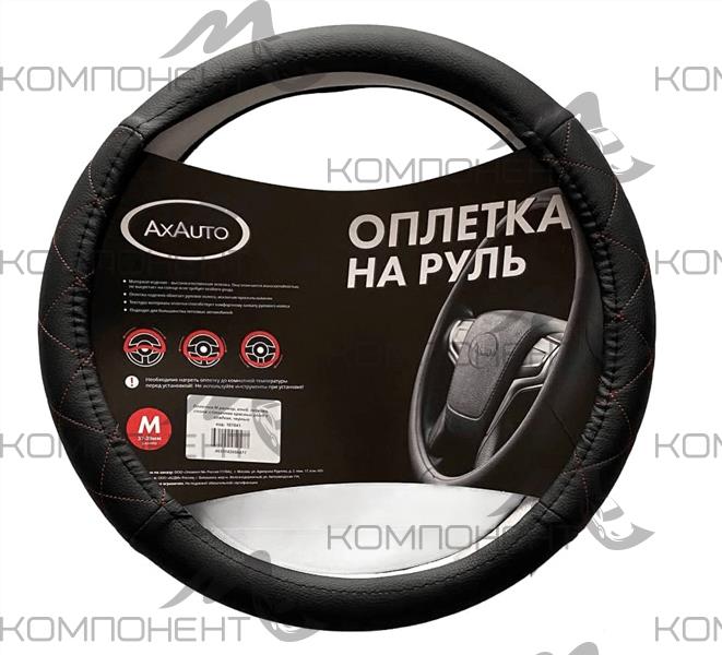 Оплетка руля M комб экокожа AxAuto спонж стеганая красный ромб + гладкая черный