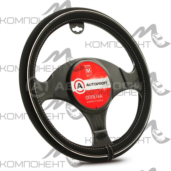 Оплетка руля M нубук синт AUTOPROFI контрастная полоса по окружности, прострочка Черн/белый