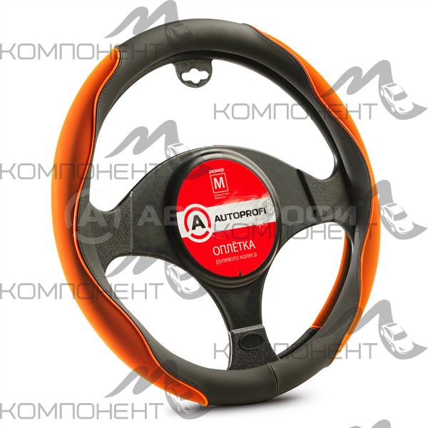 Оплетка руля M софттач+нубук синт AUTOPROFI с контрастной бейкой, гладкая основа Черн/коричневый