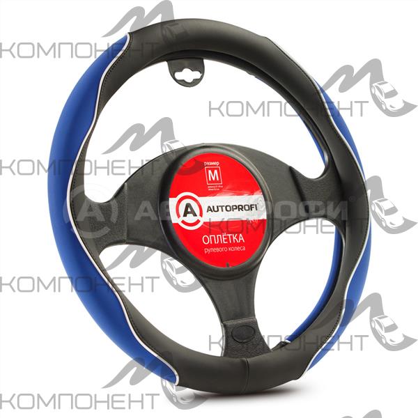 Оплетка руля M софттач+нубук синт AUTOPROFI с контрастной бейкой, гладкая основа Черн/синий