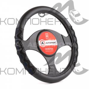 Оплетка руля M экокожа AUTOPROFI 2 объемные вставки под хват Черно/Синяя