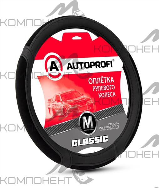 Оплетка руля M экокожа AUTOPROFI Classic вставки из замши на спонж. подложке, прострочка Черный